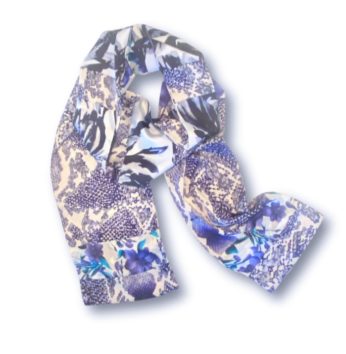 Our handmade on-of-a-kind scarves are the hardest working products in our line. Featuring gorgeous combinations of curated repurposed fabrics, including exotic brocades, knits, sequins, and silk -- including vintage kimono fabric. Each scarf is a long rectangle that is finished on both sides. A dramatic scarf can instantly transform a classic dress or coat into a stunning style statement. They are perfect gifts, too, because they fit everyone. Especially nice for cooler weather, we also have some lightweight silk styles that are great for summer. Wear them on your head, around your neck, or even as a belt. Even untied and hanging straight down the front of your dress or top, they add a dramatic vertical line of interest that elongates whatever you're wearing.